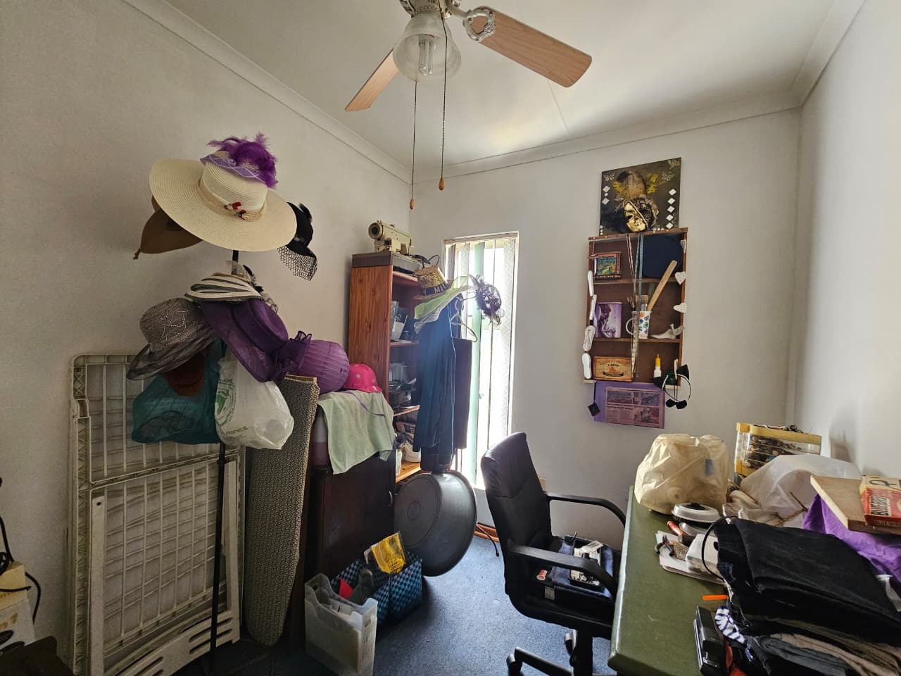 All three bedrooms are fitted with built-in cupboards, mats, ceiling fans, lights, and blinds, creating warm and inviting spaces. The main bedroom enjoys the added convenience of an en suite bathroom, complete with a toilet, shower, and basin.