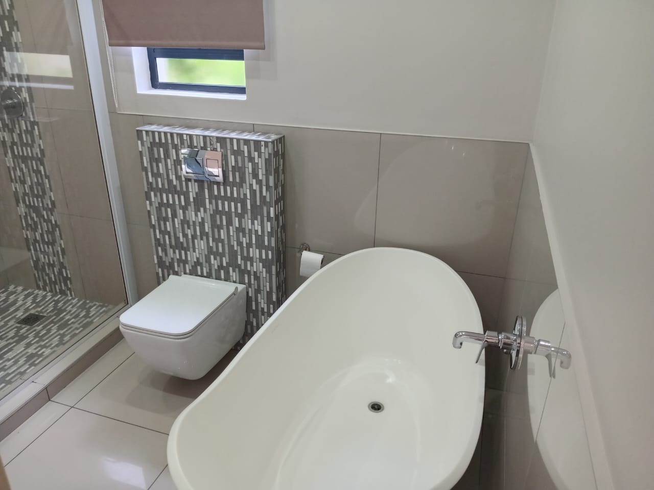 Additional features include a double automatic garage, access through a secure estate gate, two electric geysers, a pitched tiled roof, and durable aluminium window frames.