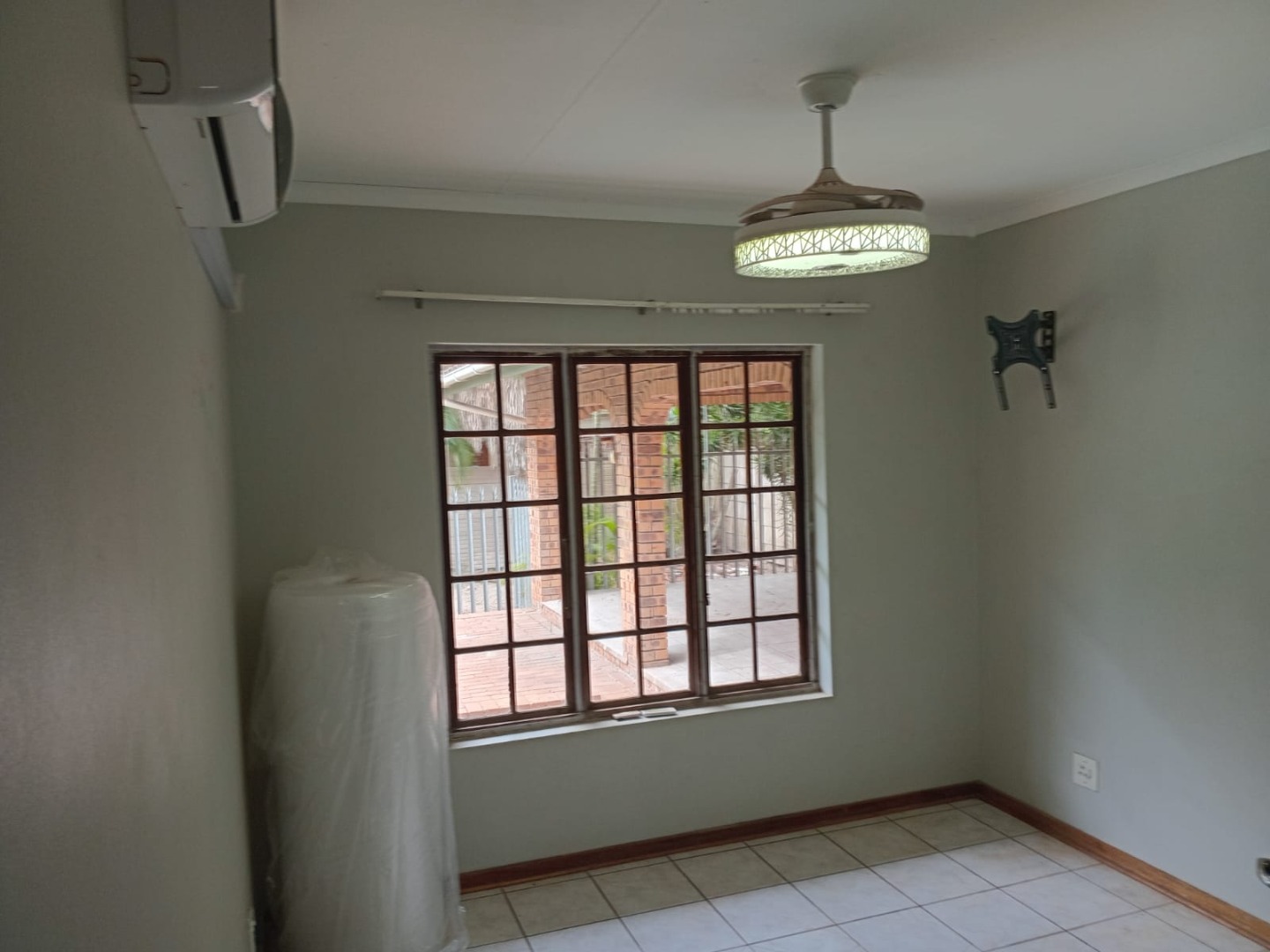 The home also boasts a dedicated study with tiled floors, a ceiling fan, lights, and curtain rails—ideal for working from home. The lounge is spacious and inviting, featuring tiled floors, a ceiling fan, lights, and curtain rails, creating a comfortable space for relaxation.