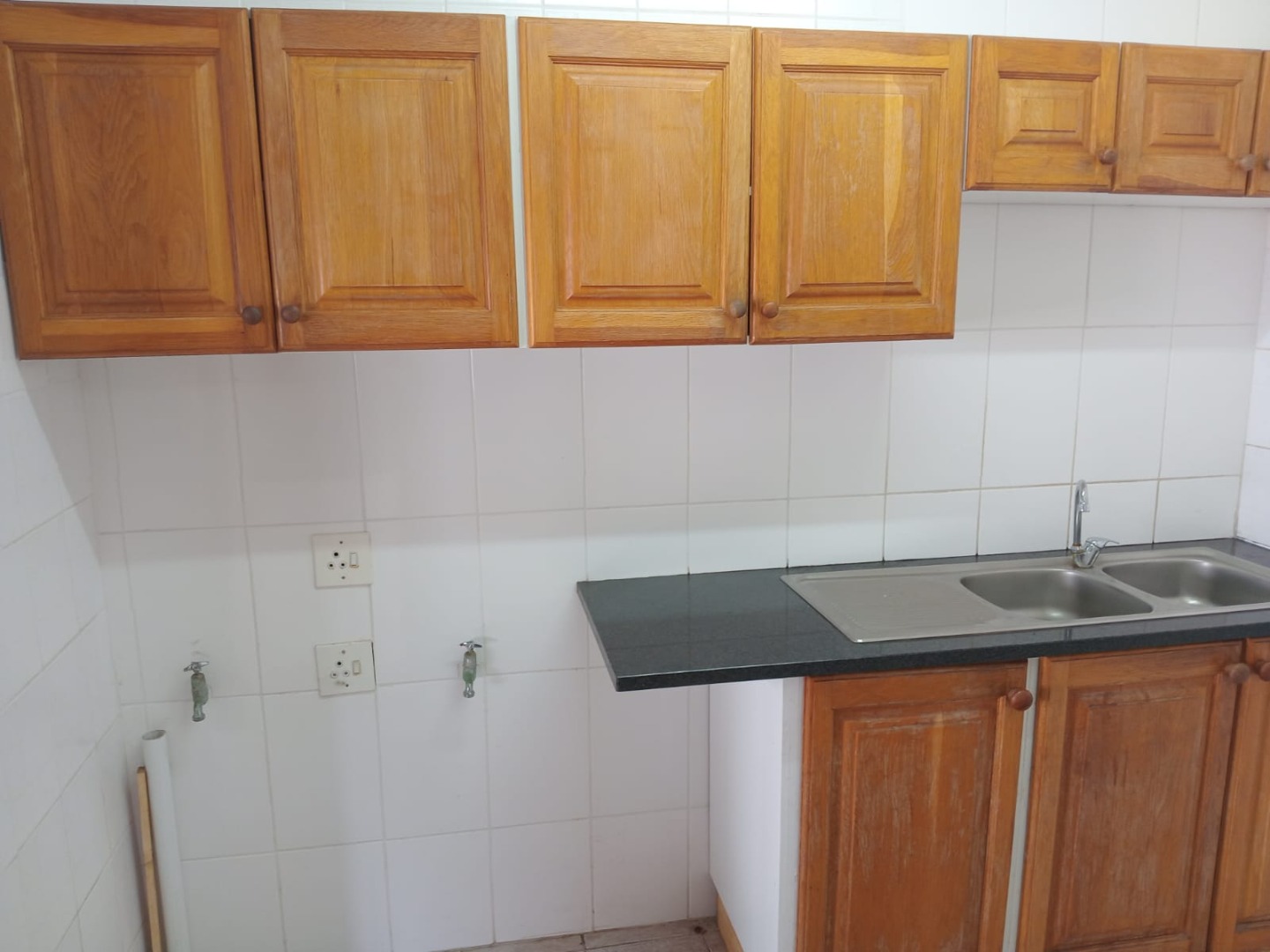 The kitchen has a classic design with tiled floors and Formica countertops, and comes equipped with a stove in good working condition, including an undercounter gas stove. A walk-in laundry area with tiled floors adds extra convenience.