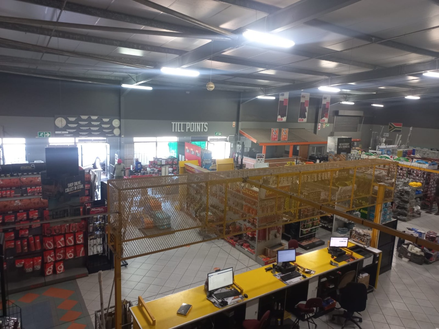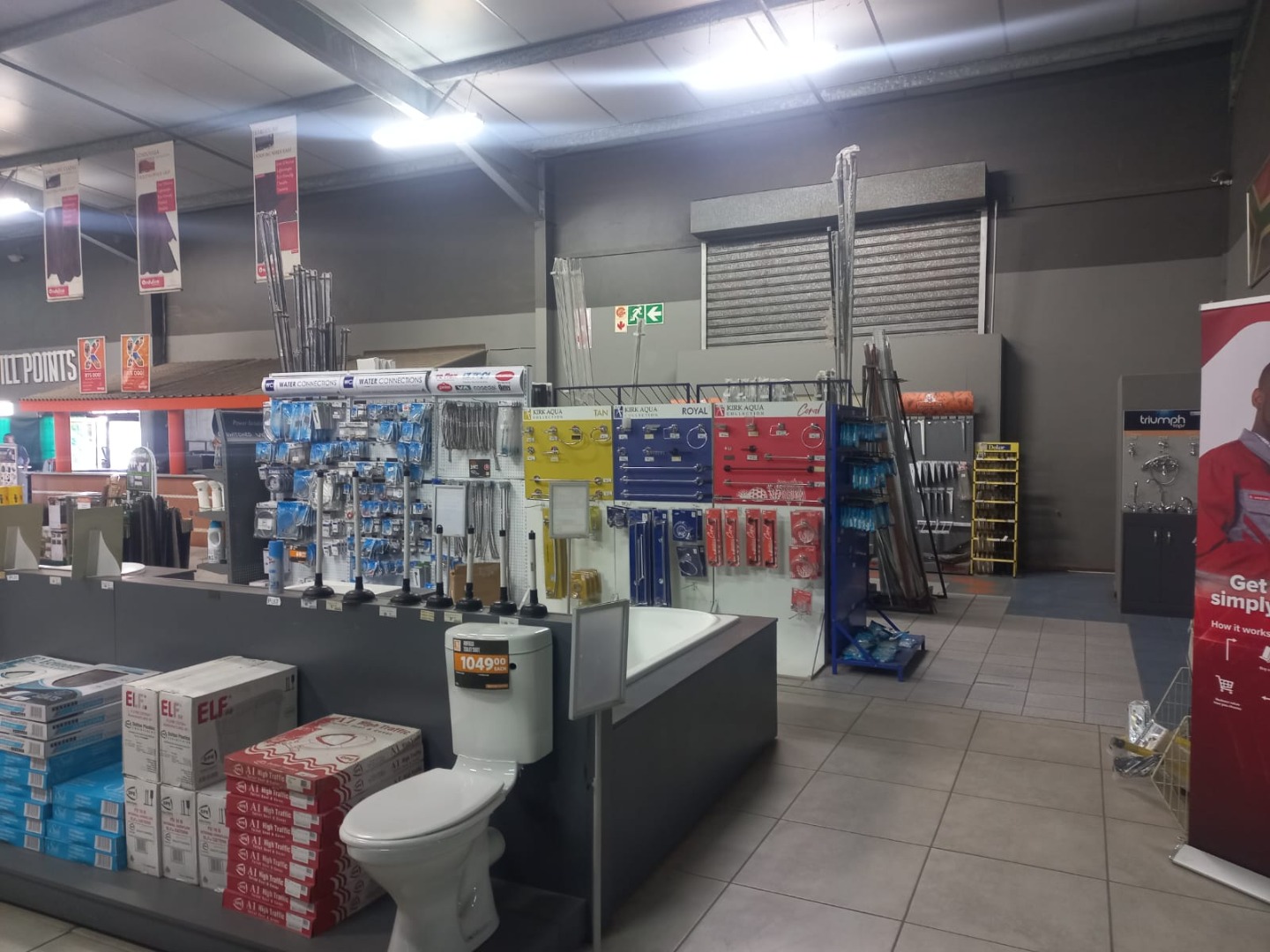 This substantial commercial property, available for rent in Empangeni, offers a highly versatile solution for businesses seeking a prominent location. The premises is ideally suited for a range of operations, from large-scale retail outlets, particularly hardware or plumbing supply stores, to comprehensive warehouse and distribution centers. The expansive layout features high ceilings and wide aisles, providing ample space for product displays, customer navigation, and efficient stock management, as evidenced by the multiple checkout counters and organized merchandising areas.