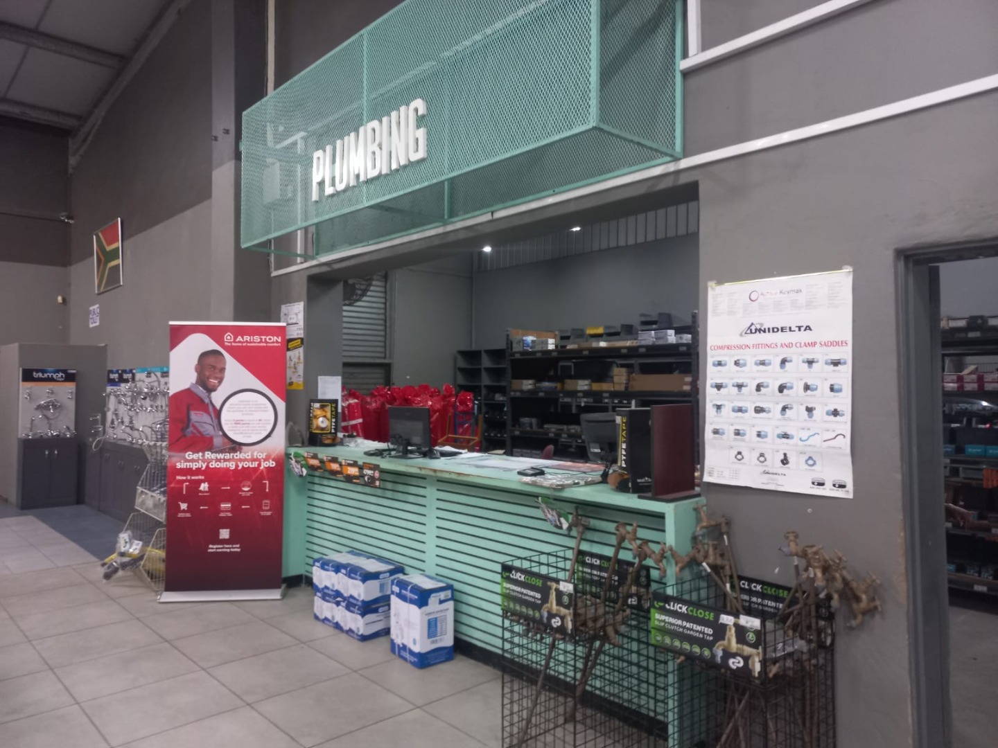 This substantial commercial property, available for rent in Empangeni, offers a highly versatile solution for businesses seeking a prominent location. The premises is ideally suited for a range of operations, from large-scale retail outlets, particularly hardware or plumbing supply stores, to comprehensive warehouse and distribution centers. The expansive layout features high ceilings and wide aisles, providing ample space for product displays, customer navigation, and efficient stock management, as evidenced by the multiple checkout counters and organized merchandising areas.