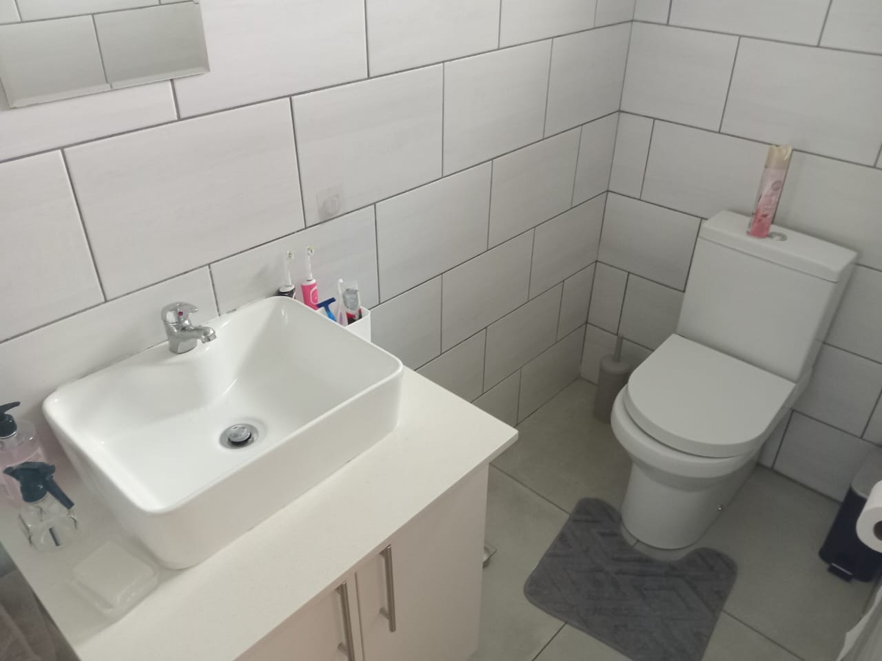 The heart of the home is the stylish open-plan living space, where the kitchen, lounge, and dining area blend effortlessly. The lounge is enhanced with modern downlights, air conditioning, and curtain rails, creating a welcoming and relaxed atmosphere. The newly fitted kitchen boasts sleek granite countertops, ample cupboard space, and comes complete with a stove and undercounter eye-level hob—perfect for cooking up a storm.