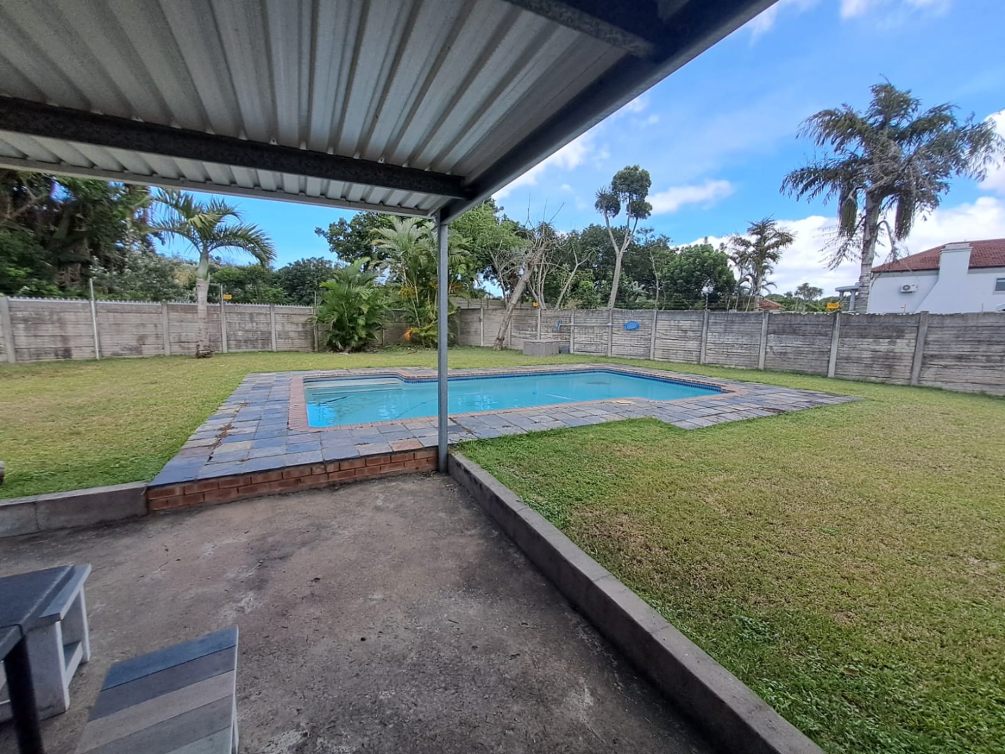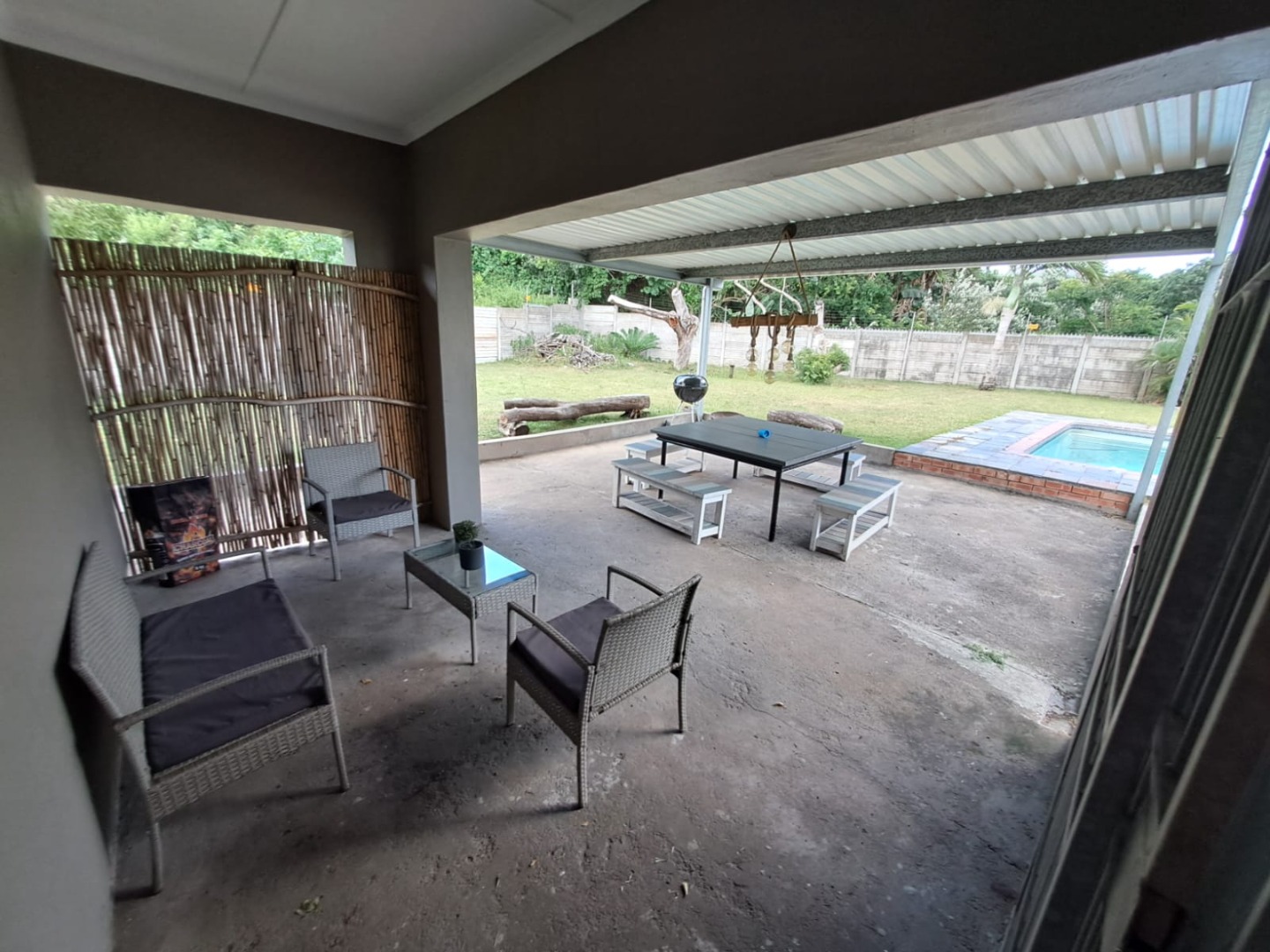 Step outside to discover a private oasis designed for relaxation and entertainment. The property features a refreshing swimming pool, perfect for warm Richards Bay days. Adjacent to the pool is a covered outdoor patio, offering dedicated lounge and dining areas, complete with a BBQ grill for alfresco meals. The fenced backyard and established garden provide a secure and pleasant environment. Parking is convenient with a double garage.