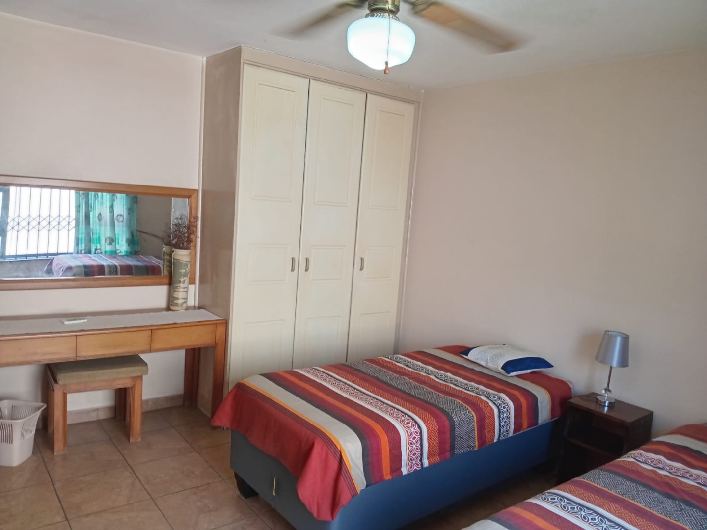 Each of the three bedrooms is designed for comfort and functionality. Bedrooms are equipped with air conditioning and ceiling fans for climate control, along with built-in wardrobes offering generous storage solutions. Security bars on the windows provide peace of mind. The tiled flooring extends into the bedrooms, ensuring easy maintenance. The layout is versatile, accommodating various living arrangements, from families to professionals seeking a convenient and relaxed lifestyle. This property is fully furnished, ideal for contractors and corporate companies.