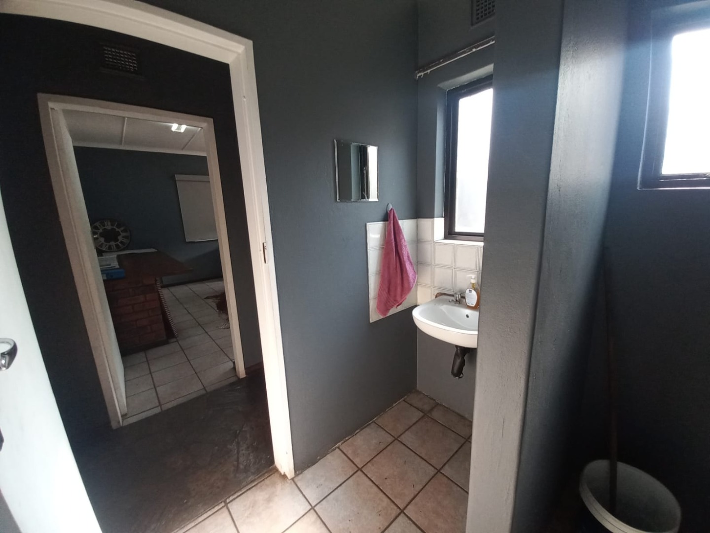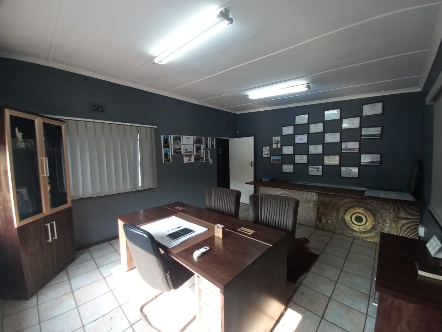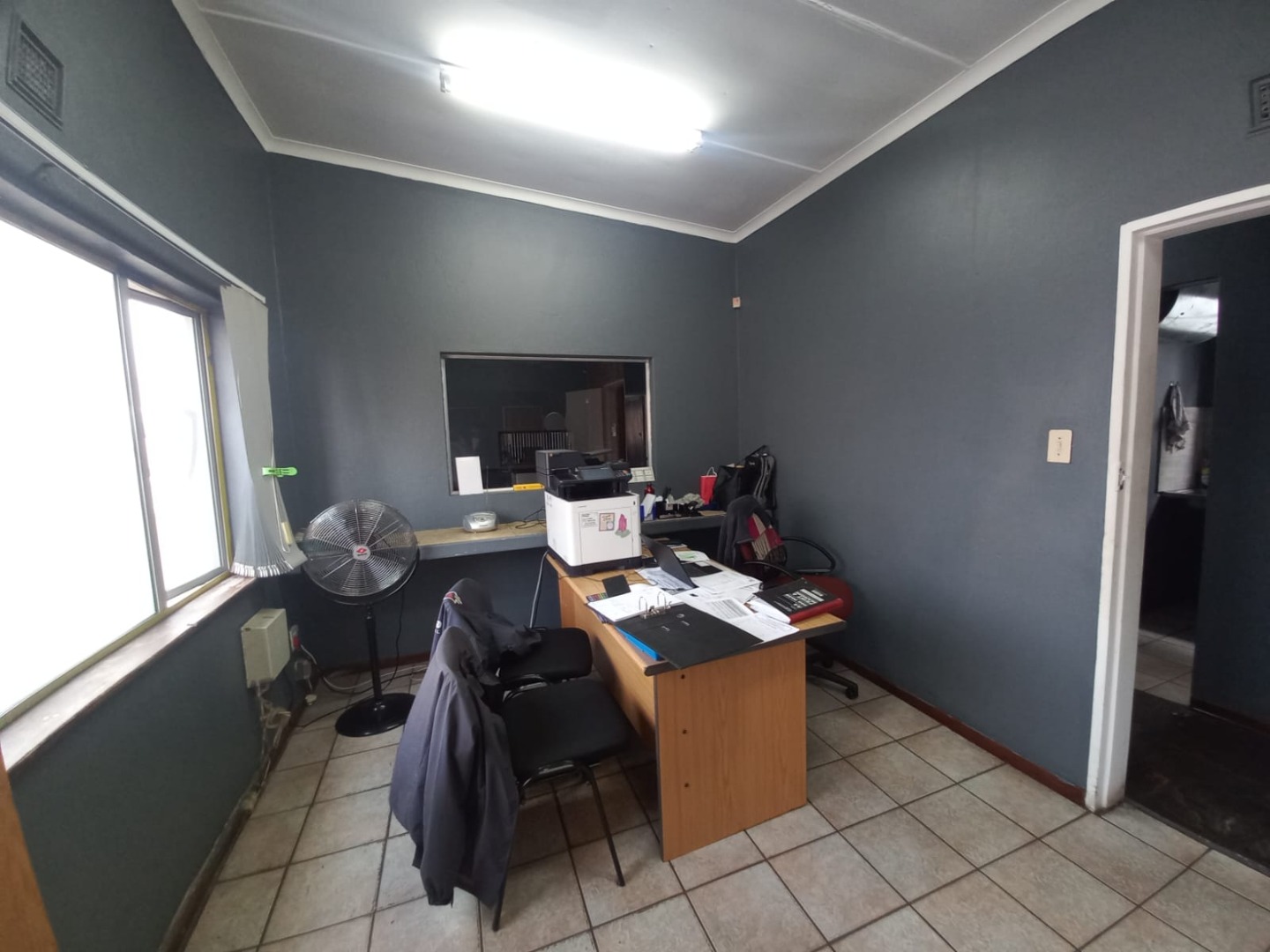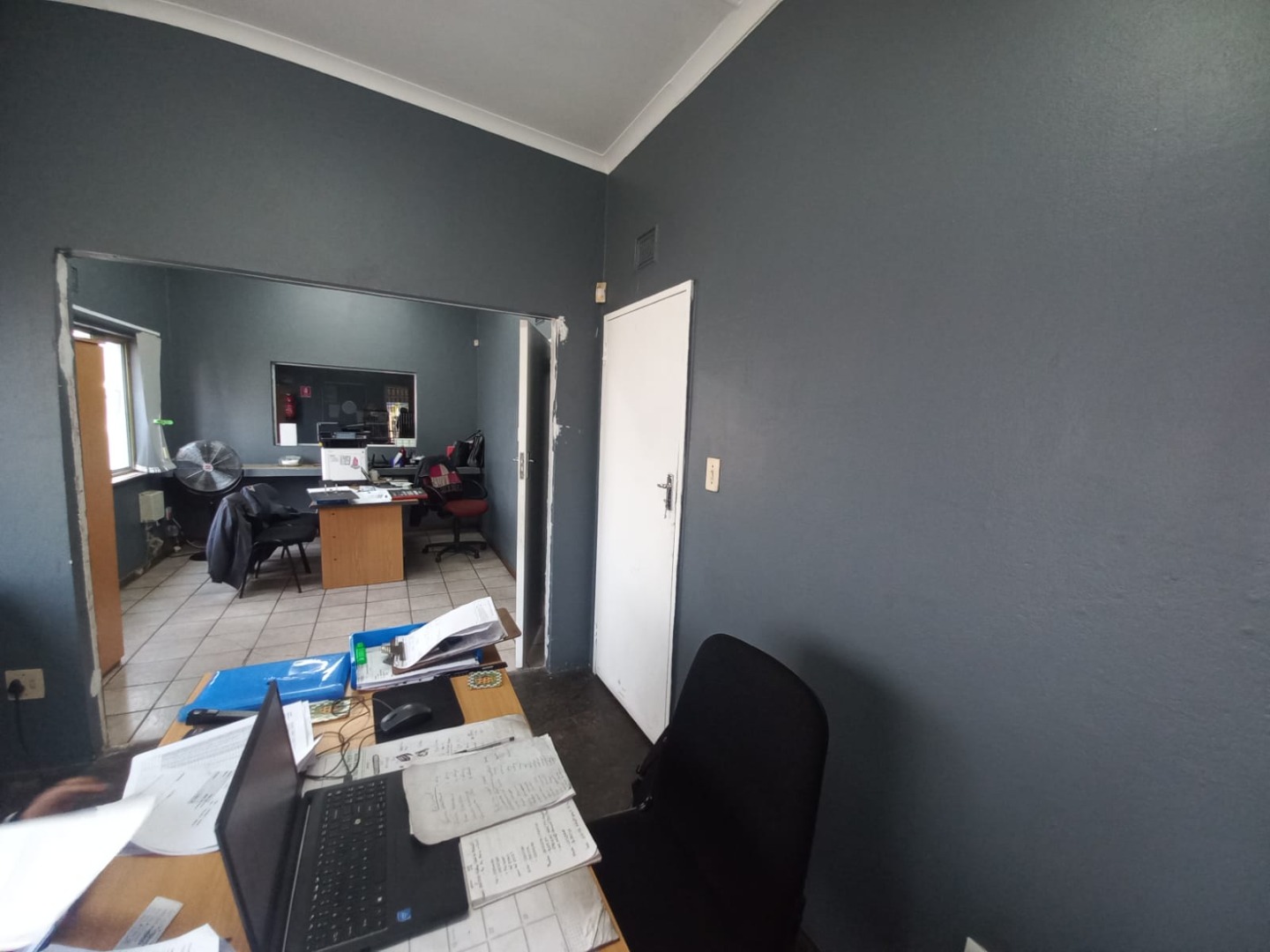 A spacious open-plan office area, ideal for administrative operations or team collaboration