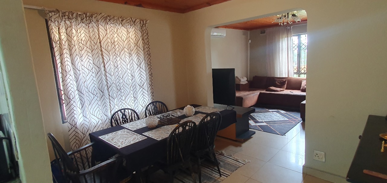 Spacious 3 bedroom, 2 bathroom (main en suite) home with separate lounge and dining room, tiled throughout. Single air conditioner. Kitchen fitted with built-in cupboards hob only. pet friendly layout. Secure perimeter wall with manual gate and pet friendly garden. Double covered aluminium carport. R11,000 per month – ideal family home close to schools and amenities.