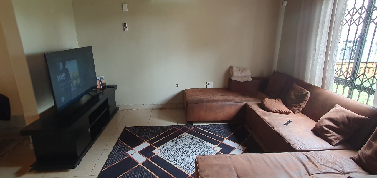 Spacious 3 bedroom, 2 bathroom (main en suite) home with separate lounge and dining room, tiled throughout. Single air conditioner. Kitchen fitted with built-in cupboards hob only. pet friendly layout. Secure perimeter wall with manual gate and pet friendly garden. Double covered aluminium carport. R11,000 per month – ideal family home close to schools and amenities.