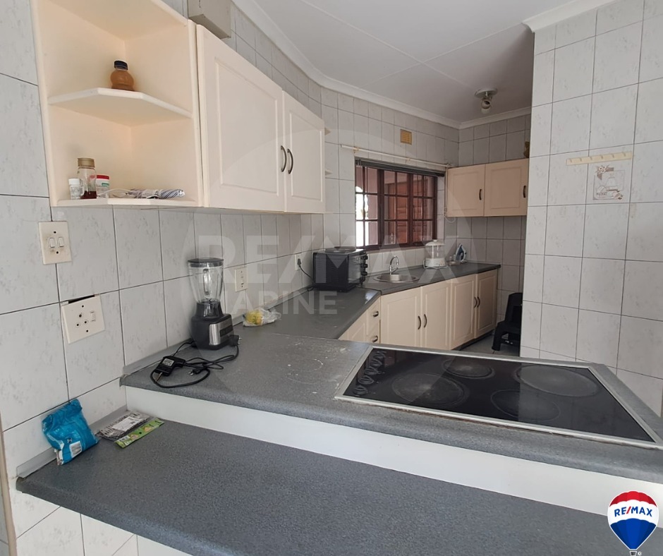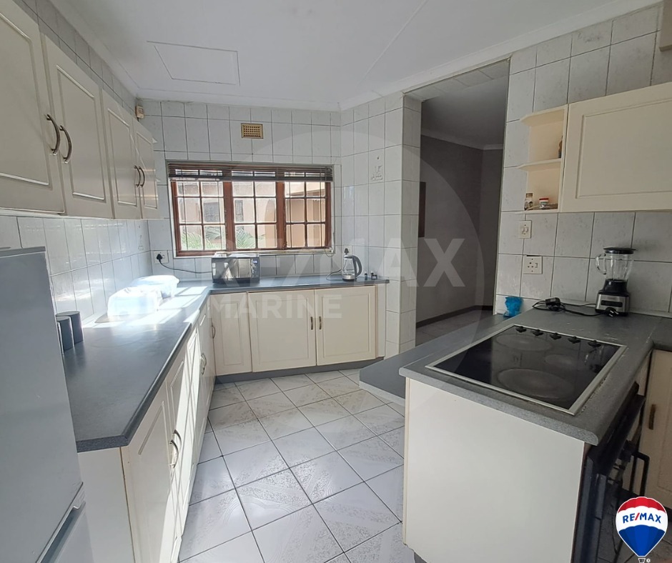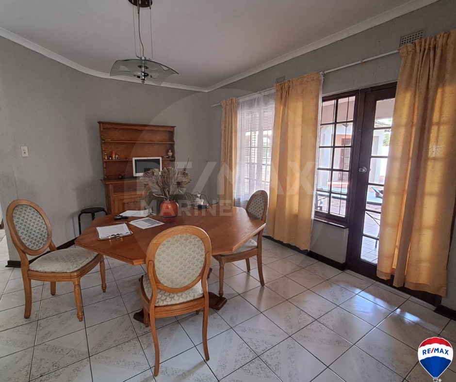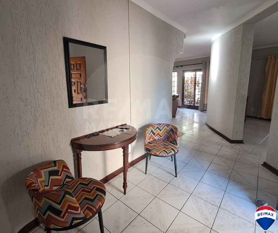 Step outside to enjoy the covered patio with a built-in braai, perfect for entertaining. A sparkling pool offers relaxation and recreation, while the property is surrounded by well-maintained gardens with garden services included for your convenience. The double garage and double carport ensure plenty of parking space.